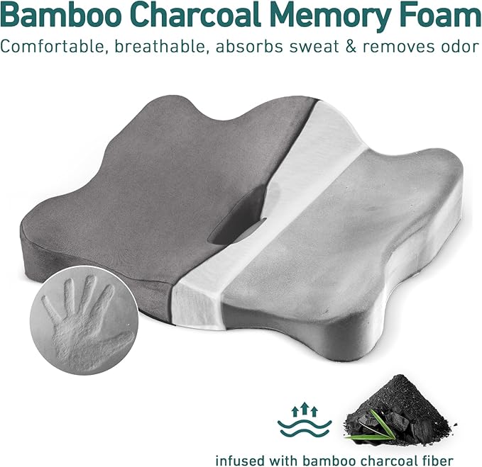 - 【Seat Cushion for Relieves Pain & Improves Posture】Forcanby Memory Foam Seat Cushion ergonomic contours encourage proper posture and a straight spine, Distribute your lower body weight evenly, reducing pressure on your hips, tailbone, and thighs for comfort even during long hours of sitting. This tailbone pain relief cushion is great for driving, working, or wheelchair usage.