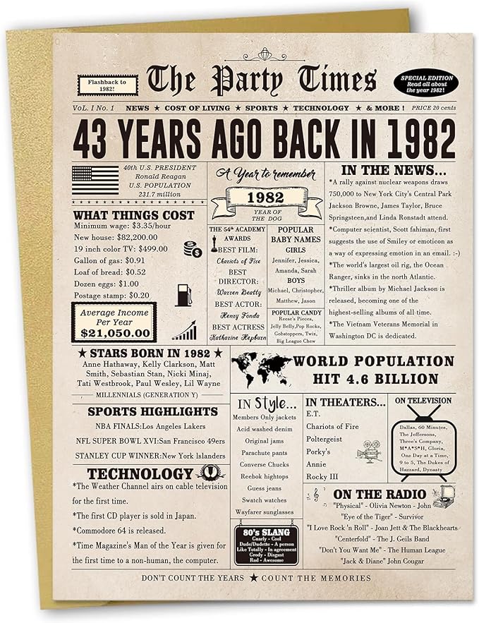 Happy 43rd Birthday Card for Women Men, Funny 43 Year Old Birthday Gift Card for Husband Wife Him Her, Retro 43 Bday Decorations Ideas