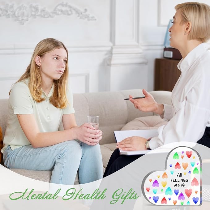 Mental Health Decor, Psychotherapy Affirmations Heart Acrylic Sign, Inspirational Office Decor, School Counselor Sign, Positive Sayings Gifts for Social Worker Classroom School Counseling