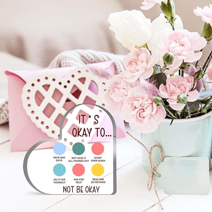 Mental Health Decor, Psychotherapy Affirmations Heart Acrylic Sign, School Counselor Sign, Mental Health Anxiety Healthy Coping Skill, Mental Health Gifts for School Home Tabletop Therapy Office Decor
