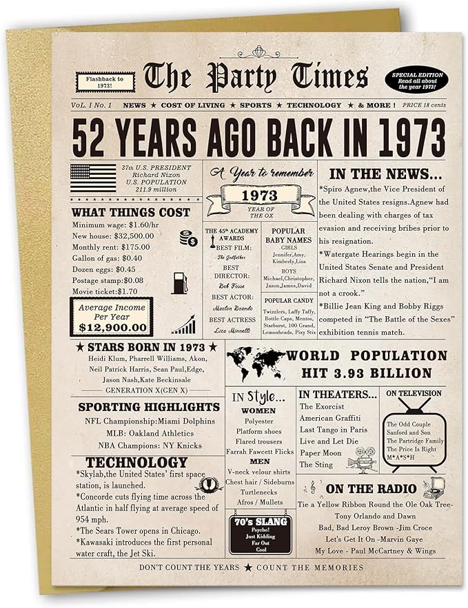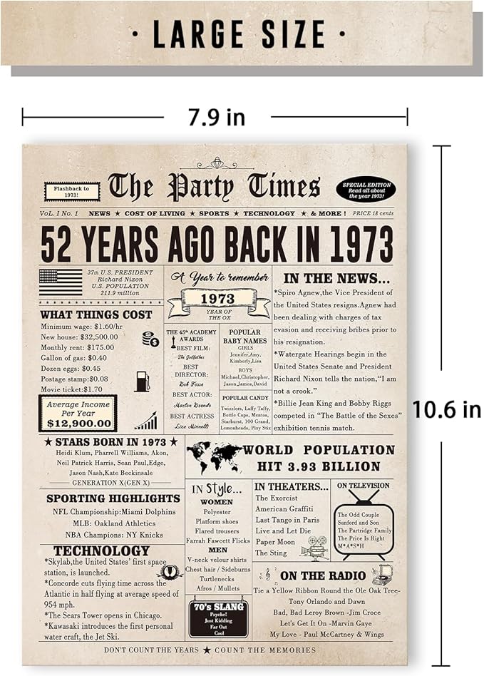 - 【52nd Birthday Decorations for Her】 This is a good topic. It's interesting to look back and see the price of everything back then and the history of what was going on.