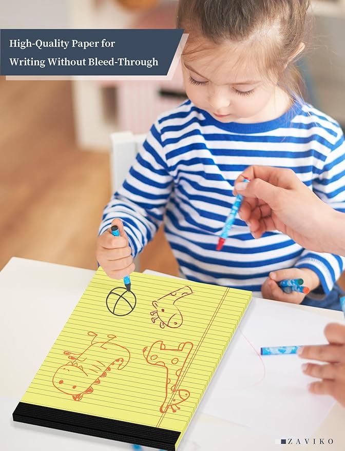 - STURDY THICK BACKING: The hardboard back of the yellow pads 8.5 x 11 letter size made of quality card stock material for writing support. The sturdy backing of the yellow notepads paper offers additional stability while you write, draw, and design. Writing pads 8-1/2 x 11 allows you to take notes without a table or desk to lean on.