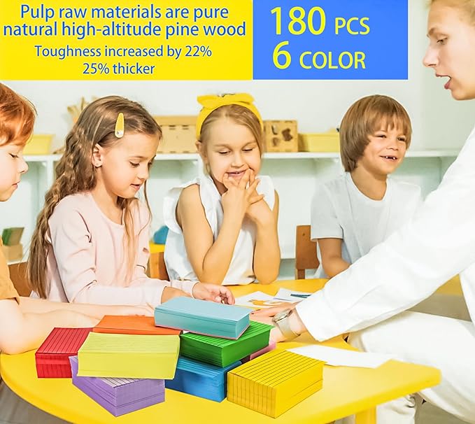 - Value Pack: The package comes with 180 pieces of index cards in 6 colors,including orange,yellow,blue,pink,purple and green,30 pieces per color.The vibrant and bright colors will make you in a better mood,improve your learning efficiency and memory.Diverse colors can meet your daily using needs,also convenient for you to record different contents according to different colors