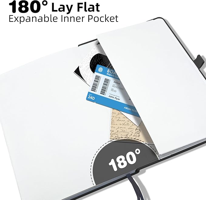 - ✍🏼180°LAY FLAT DESIGN: The classic unruled notebook can be laid flat and fully spread out 180° without hindering your drawing, making writing easier for both right and left-handed users, which make the best use of your writing space.