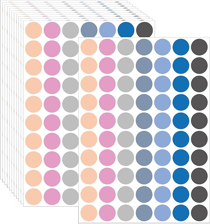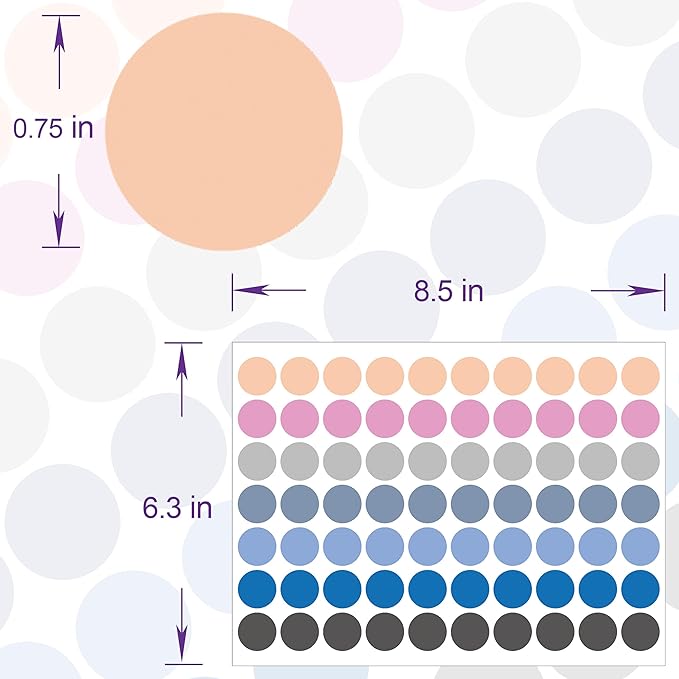 - 【Size - Round Stickers】Each colored coding label is 0.75 inches/1.9 cm in diameter, with a paper size of standard letter size: 6.8" x 8". There are 18 sheets with a total of 1260 circle labels.