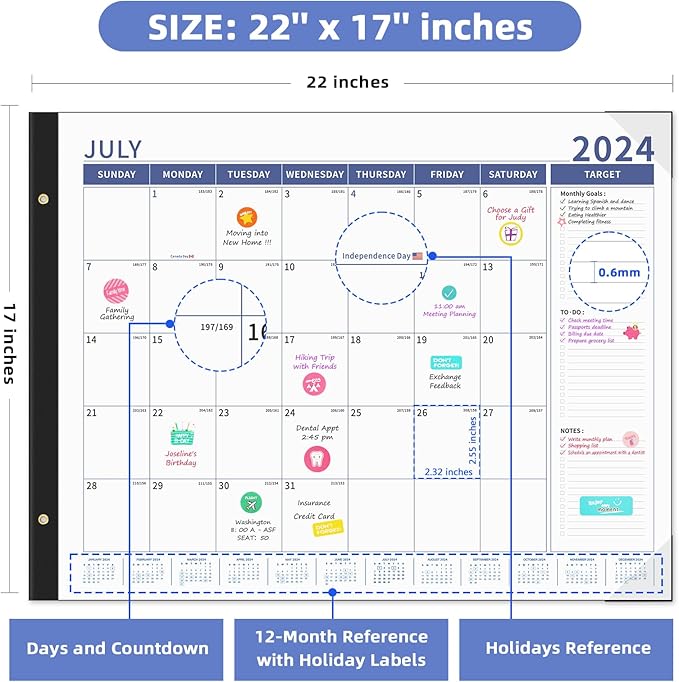 - 【22" x 17" Large Calendar】 Our office desk calendar, designed with productivity in mind, offers an expansive writing area that allows you to effortlessly schedule, plan, and keep track of crucial dates, deadlines, and holidays. Featuring prominently displayed holiday markings and convenient 12-month referencing calendars, this calendar ensures that you can effortlessly visualize and manage your daily, weekly, and monthly schedule with utmost ease and efficiency.