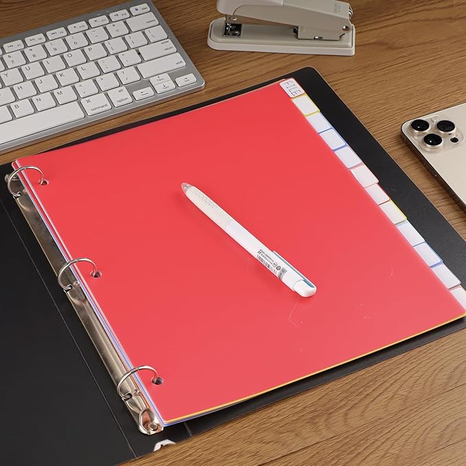 - 【SCHOOL AND OFFICE NECESSITIES】The colorful borders on these file dividers with tabs add a touch of style to your binder. Three ring binder dividers with tabs are perfect for organizing schoolwork, office documents, or even personal papers.