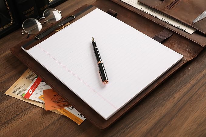 - √Considerate Gift - Inspired by classic leather craftsmanship, the padfolio is timeless. This notepad portfolio makes for the perfect birthday, graduation, anniversary, business, Christmas, and New Year's gift.We offer custom engraving services for names, initials, and logos. If you want a personalized portfolio, please choose the "Custom" size option.