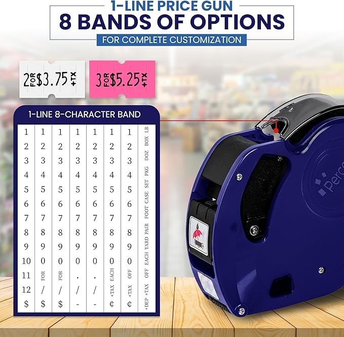 - Perco Lite Price Gun Kit: Each Perco Lite pricing kit includes a brand new one line pricing gun labeler, 3 White Rolls, 3 Fluorescent Pink Rolls, instruction manual, 2 inkers, and label scraper. Perco's Lite pricing gun and labels kit come pre-loaded with a roll of labels and ink roll, plus an additional 4 rolls of Perco Labels that fit perfectly for smooth operation and print alignment. Perco’s price label gun includes a Two Year WARRANTY.