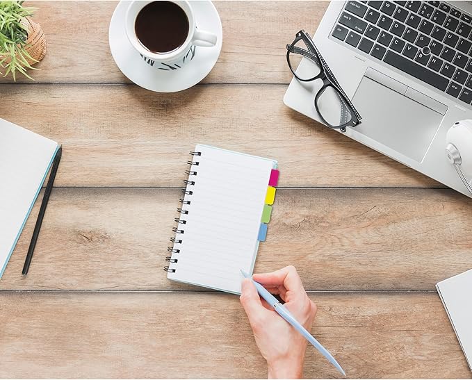- Efficient Organization: Desk Tech Sticky Index Tabs offer a simple yet effective solution for organizing your files, binders, books, and notebooks. With 24 sheets in 6 vibrant colors, easily categorize and locate important information.