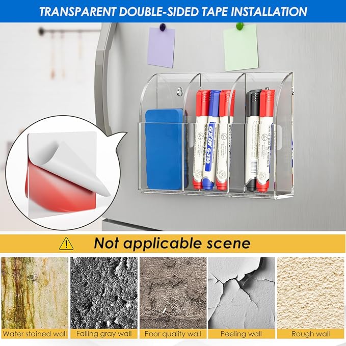- LARGE CAPACITY--This clear dry erase marker pen holder has 3 compartments for holding markers and erasers. This white board pen organizer will help you to save your space, organize your messy whiteboard accessories and create a neater environment for you!