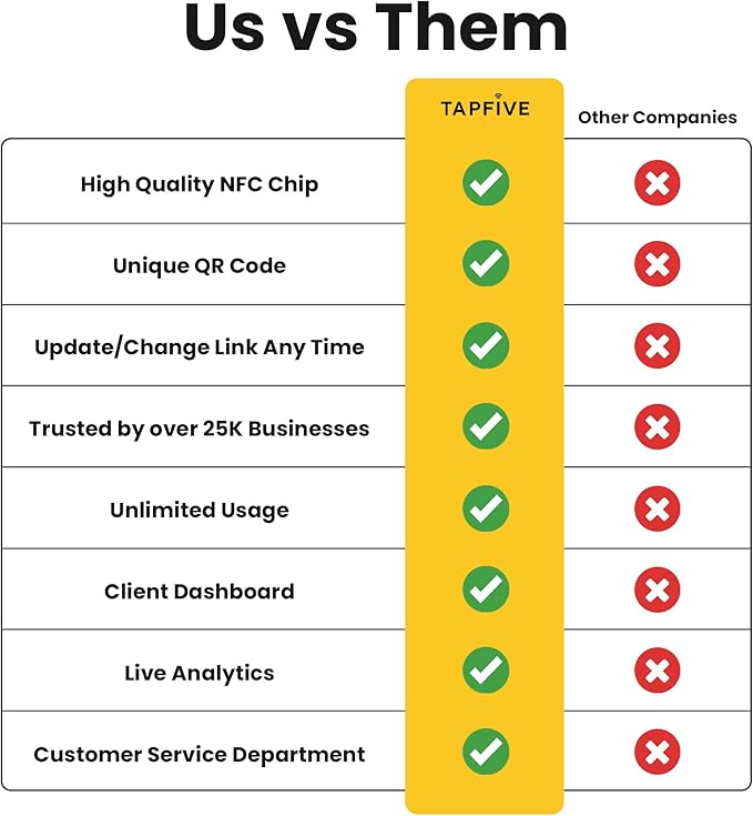 - 🌟 GET MORE 5🌟 REVIEWS: Customers can easily access your reviews page by tapping the card and share their positive experience. TapFive Stands are powered by TapSnap technology, a leader in NFC tap tag technology.