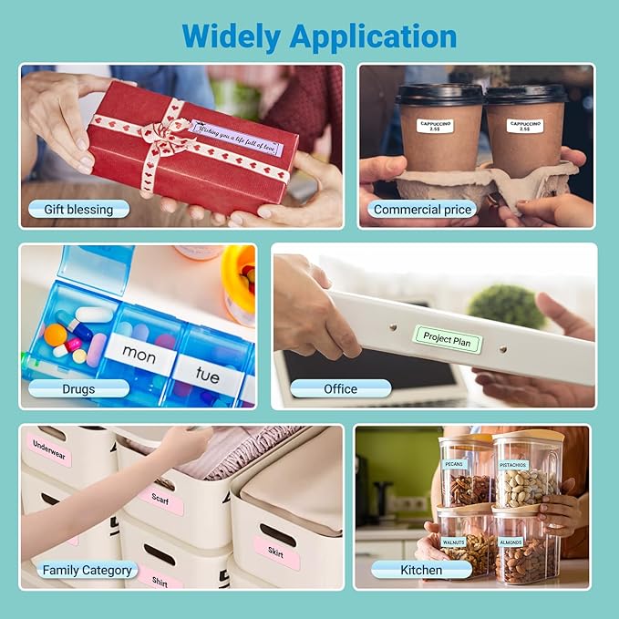 - Please Note: Do not tear off the sticker on the side of the label roll, as this may affect the printing quality; The label tape can only print black text; Printed content can be stored for a long time under room temperature and away from direct sunlight (high temperatures or strong light can cause the labels to fade, so please avoid using them in such environments)