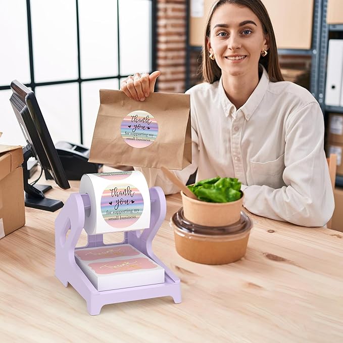 Label Holder Thermal Label Holder for Rolls and Fanfold Labels Shipping Label Stand Desktop Printer DIY Accessory Supplies for Home, Office (Fresh Purple)