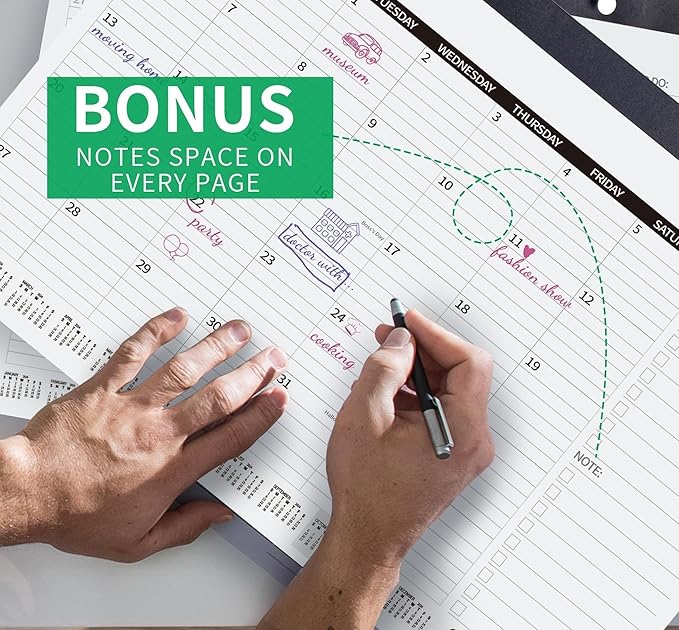 - Effortless Organization and Abundant Writing Space: Effortlessly organize your schedule and never forget important details with our spacious 17" x 12" desk calendar, which provides ample writing space in generously sized daily grid blocks and dedicated monthly note columns for jotting down additional information, goals, or ideas while keeping your schedule neat and organized, complete with holidays and important dates for your convenience.