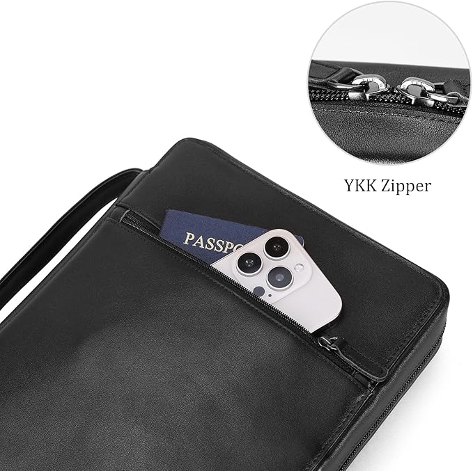 Polare Napa Leather Bible Cover Church Bag Bible Protective Book Holder Carrying Case Folder Organizer Portfolio, Black