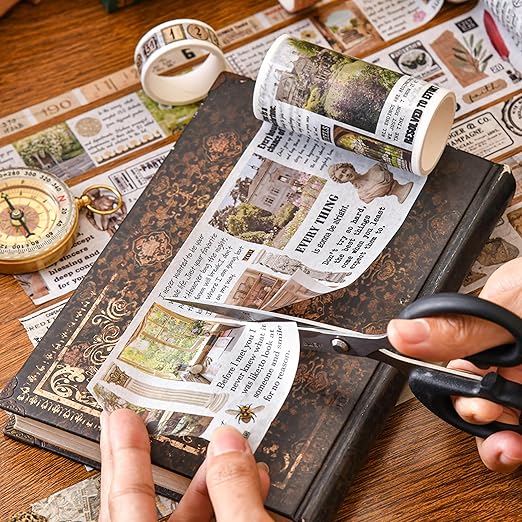 - 👍【CLASSIC ART DESIGN】This washi tape has a strong retro style, featuring a yellowed base color adorned with meticulously designed vintage patterns such as stamps, newspapers, specimens of flora and fauna, building Notes and manuscripts. It takes you back several decades, allowing you to experience the bygone era