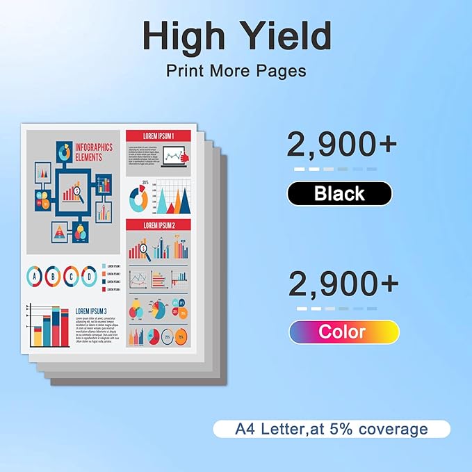 - High Page Yield: up to 2,900 pages per LC109BK black cartridges, up to 2,900 pages per LC109XXL color cartridges (at 5% coverage)