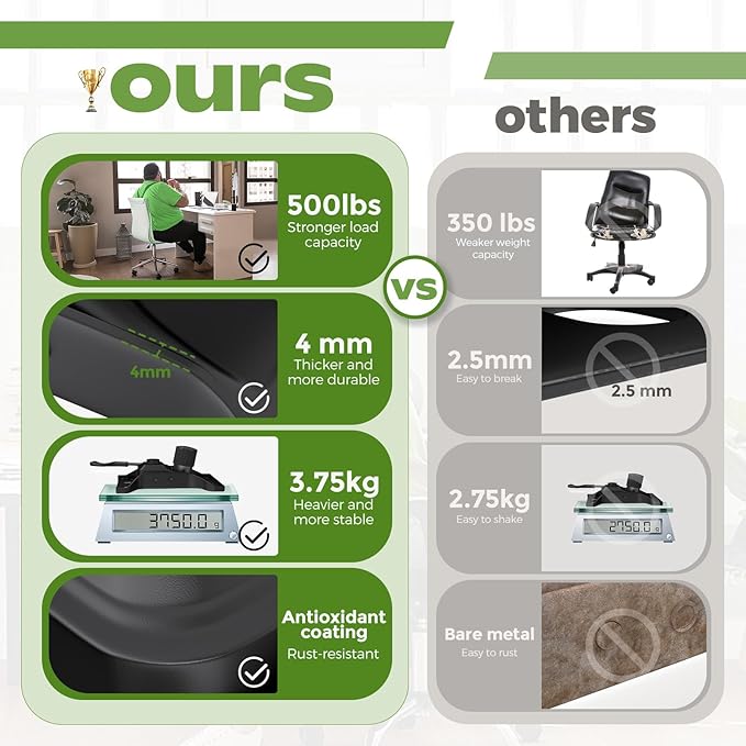 - 【Heavy Duty Steel】Constructed from heavy-duty steel with an antioxidant coating, this tilt base guarantees an extended lifespan. With an overall weight of 8.16 pounds, a tilt plate thickness exceeding 4 inches, and screw mounting hole centers measuring 5.95" wide by 10.15" long, it robustly supports up to 500 pounds of pressure. Ideal for repairing or upgrading the bases of executive chairs, office chairs, gaming chairs, and more