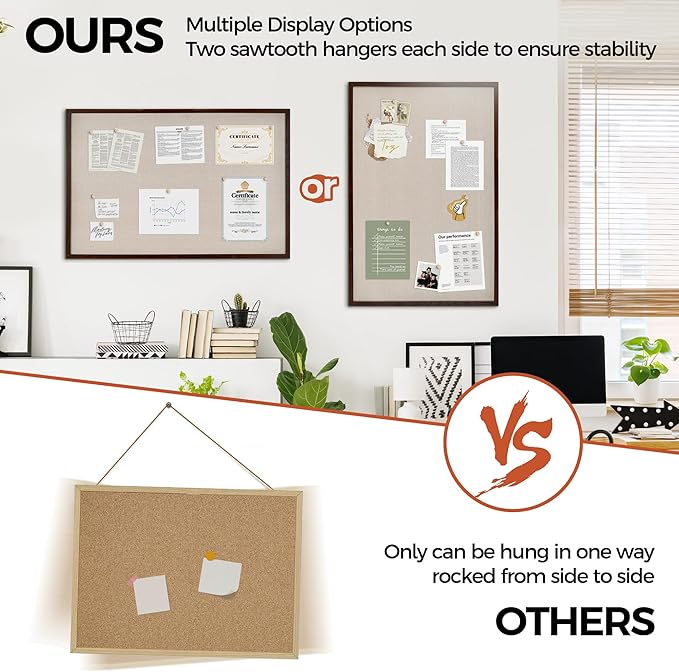 - Unique Design: Easily customize the board orientation to fit your space. Natural cork bulletin board add a classic look to your office or home. Both strong and stylish, it will be a great addition to your space