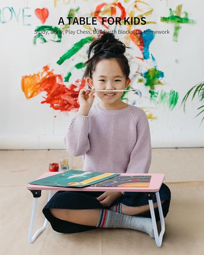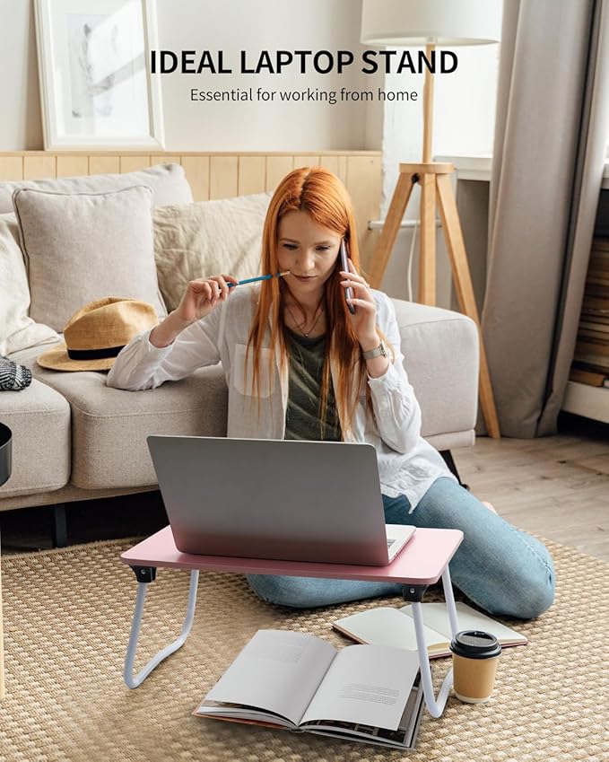 Ruxury Foldable Lap Desk Laptop Stand Bed Desk Table Tray, Breakfast Serving Tray, Portable & Lightweight Mini Table, Lap Tablet Desk for Sofa Couch Floor - Pink