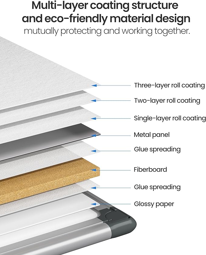 - Safety And Stability: The VUSIGN whiteboard's silver aluminum frame helps prevent scratches and enhances its stability. With the ABS corner design and screws underpinning the corners, it ensures the safety of whoever is using it