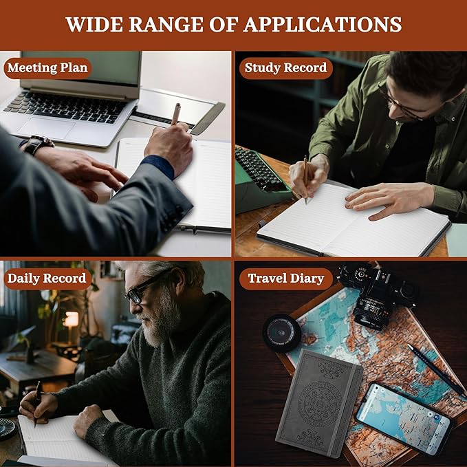 - UPGRADED DESIGN MORE INTIMATE - We have made new upgrades and optimizations to our products!Now every vintage hardcover diary comes with a pen. The journal notebook now is packed with features like pen holder, elastic closure, ribbon bookmark and inner pocket. These thoughtful designs help you better manage and save your ideas and record inspiration anywhere!