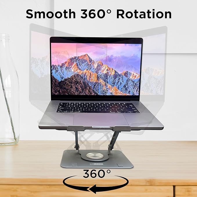 - ROTATE: Enhance collaboration and flexibility with a computer laptop stand with 360° rotation, perfect for designers, presenters, and remote workers sharing screens effortlessly.