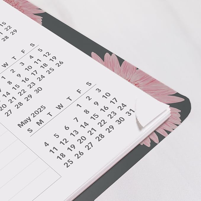 - Flexible twin-wire binding with colorful, soft printed cover construction allows planner to fold back for a flat and sturdy writing surface.