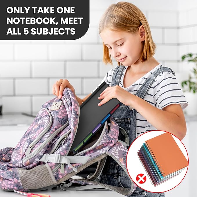 - 【Organizer Notebook】The spine of the notebook with tabs is designed with fabric, which can save backpack space. The back of the 5 plastic subject dividers notebook is designed with a baffle, which prevents pages from getting stuck and facilitates smooth writing.