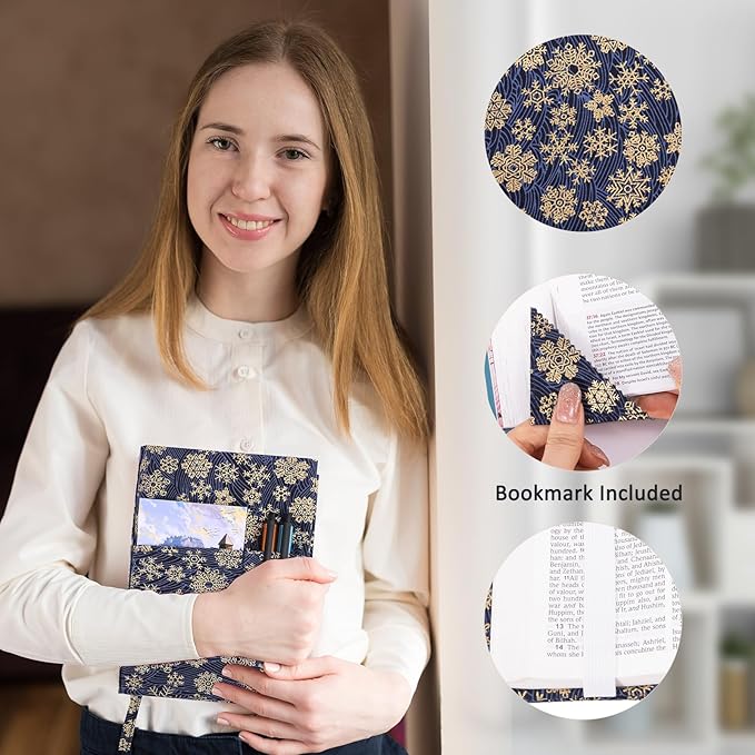 - FUNCTIONAL POCKETS - This fabric book cover features convenient pen slots and pockets for the notebook, journal, phone, card, iPad, and key.