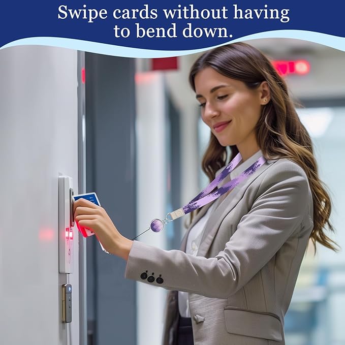 - Retractable Badge Reel: This lanyard with retractable badge reel can extend up to 15.75 '', allowing you to swipe the ID card to the desired position without the need to take them out or bend down. The cute badge reel is made of sturdy plastic and steel, ensuring durability and wear resistance. Moreover, this badge reel also comes with a split key-ring for attaching keys
