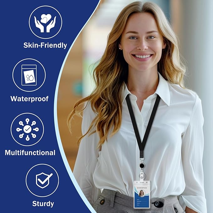 - Essential Daily: This necklace ID badge lanyard and retractable badge reel are designed in a classic black color scheme, offering a simple, elegant, and versatile look that meets your various needs in work, life, and travel. Package Included: ID lanyard retractable reel x2, thickened waterproof ID holders x2. This 2-piece combination meets different needs, with one Suitable for personal use and the other suitable for gifting to colleagues, family, or friends