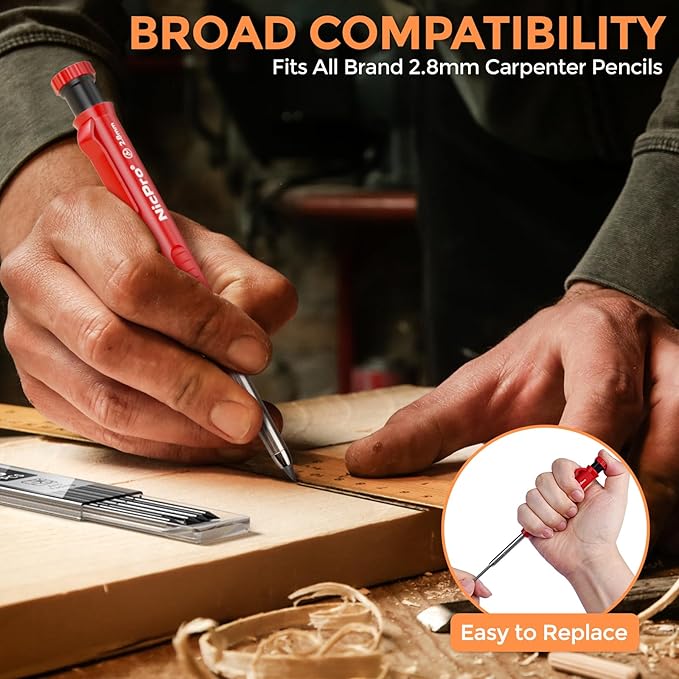 - Wide Compatibility: The standard 2.8mm lead refills replacement fit for All nicpro carpenter pencil as well as other brands woodworking pencil