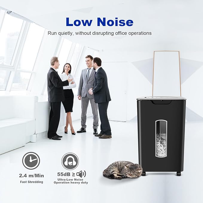 - 【Whisper-Quiet Operation at 55dB】Designed for a peaceful workspace, this shredder operates at just 55dB, making it one of the quietest shredders on the market. Ideal for home offices or shared spaces.