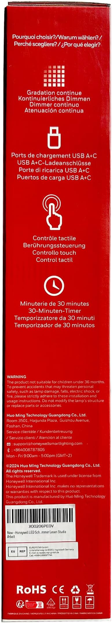 - 【Simulate Natural Sunlight Lighting】 The Honeywell HWT-H2 desk lamp utilizes 48 Sunturalux full-spectrum LED bulbs to simulate natural sunlight for an illuminating experience. The light is gentle, free from blue light, glare, and flicker, caring for your eyes. With a CRI ≥94 high color rendering index, this desk light accurately presents true colors, making them more vivid, and with a lifespan of up to 30,000 hours, it's an ideal desk lamp for long hours of reading, studying, and working.