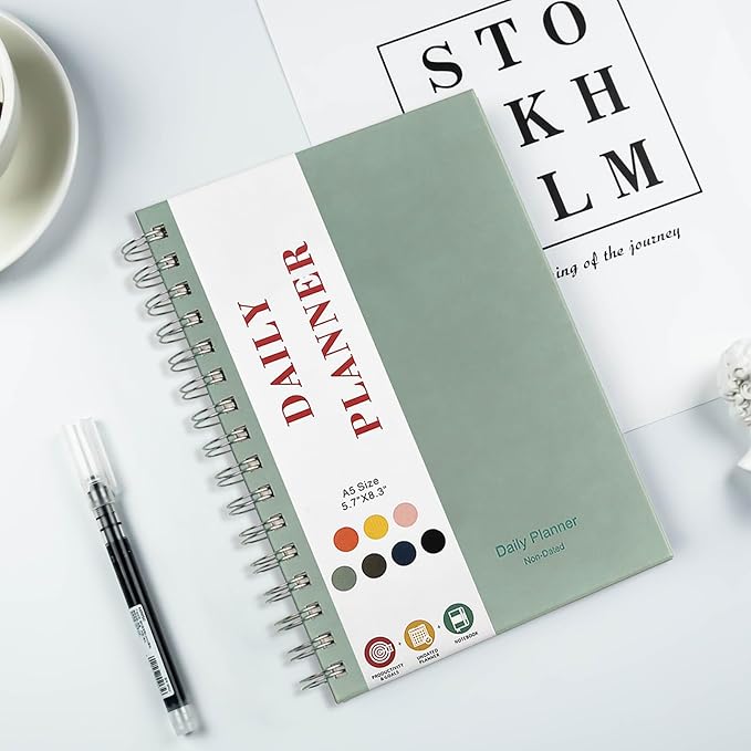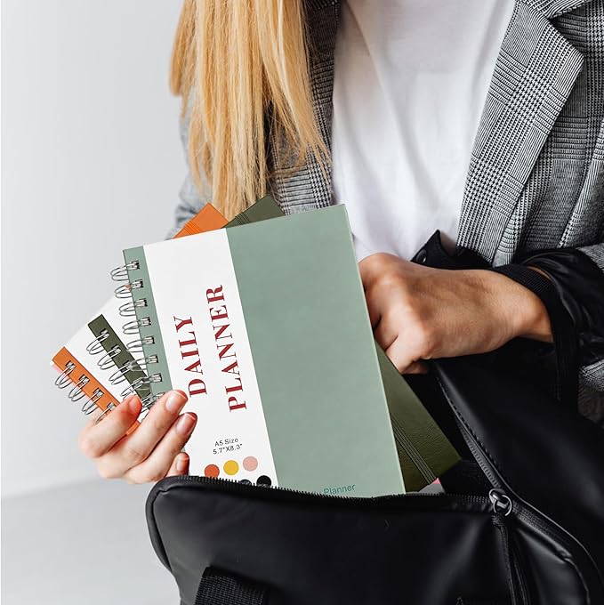 - " 【Easy to Carry】8.5 x 5.9 inch, Popular perfect size for your handbag or briefcase. The undated planner also can be used as a school planner, student planner, academic planner, college planner, work notebook. A perfectly portable daily planner journal for work, home, school, and travel is a perfect gift."