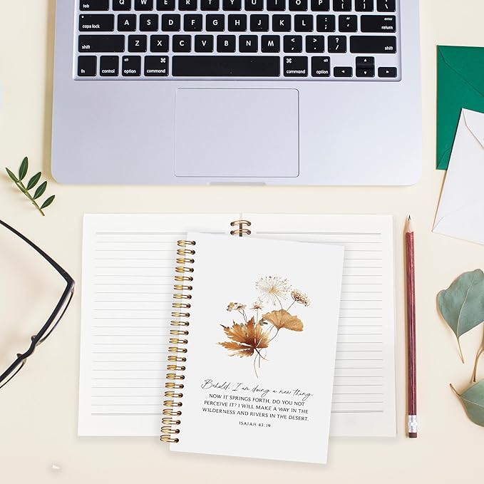 BearCake bible journaling notebook,christian journal bible for women,Bible Notebooks for Note Taking Behold I am Doing a New Thing Floral Christian Notebook bible Journal,Spiral Notebook 5.5x8.3