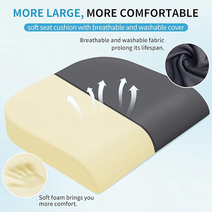 - [Soft Foam ] Our seat cushion is crafted with premium soft foam to ensure optimal comfort and support. It is perfect for office chair, home seat, car seat, airplane seat. When you take a long journey, you can take it with you.Unlike other seat cushions, it remains pliable even in the winter months to make it the perfect chair pad for year-round use
