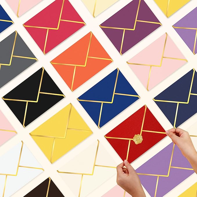 - How To Seal? The 5x7 mailing envelopes are not self-seal type, but come with some special gold embossed and waterproof stickers as seal,look like wax seal , with good adhesion, for you to seal A7 envelopes easily and firmly,won't worry cards fell out