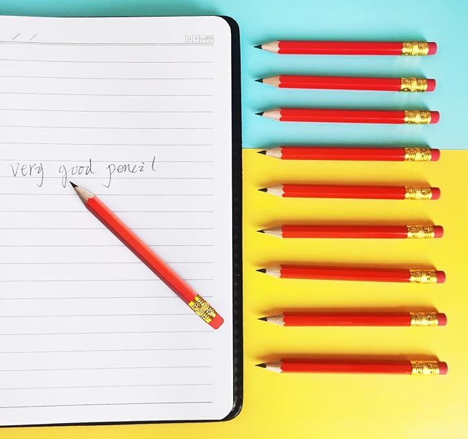 Adhere 25pcs Golf Pencils with eraser Hexagon Wooden Pencils Graphite 2B for Golf Event Scoring,Classroom,Wedding,Company Meetings,Pew, Pocket (Red)