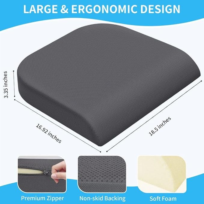 Large Seat Cushion, Soft Foam Cushion for Long Sitting Hours on Office Chair, Home & Car, Non-Slip Chair Pad for Relieving Back & Sciatica & Hip & Coccyx Pain (Grey)
