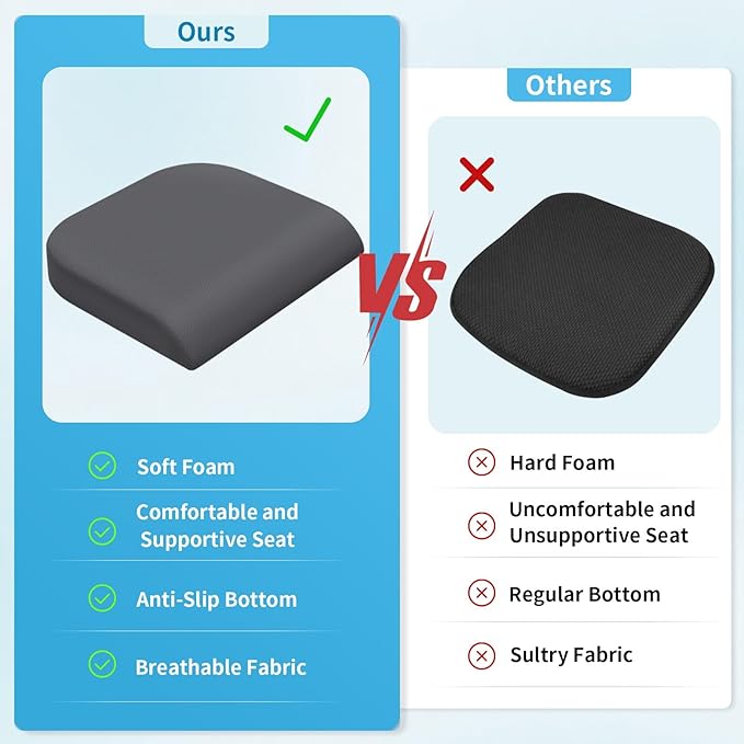 - [Soft Foam ] Our seat cushion is crafted with premium soft foam to ensure optimal comfort and support. It is perfect for office chair, home seat, car seat, airplane seat. When you take a long journey, you can take it with you.Unlike other seat cushions, it remains pliable even in the winter months to make it the perfect chair pad for year-round use