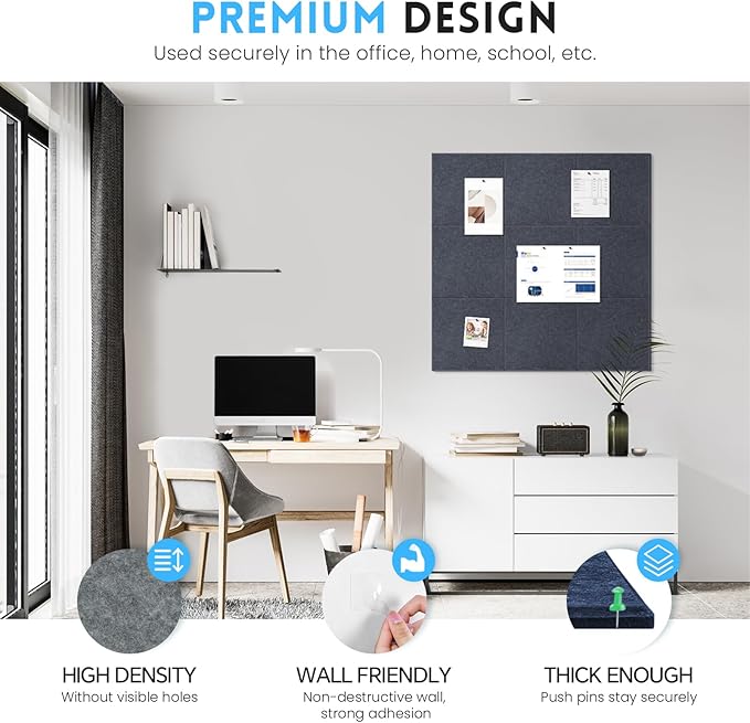 - Perfect Cork Board Alternative - Replace your old-fashion bulletin board with our more affordable and stylish felt board, this customizable pin board is more suitable for home, office, school and any other spaces. The set includes 6 pack felt wall panels, 50 push pins, 30 adhesive tabs and user manual.