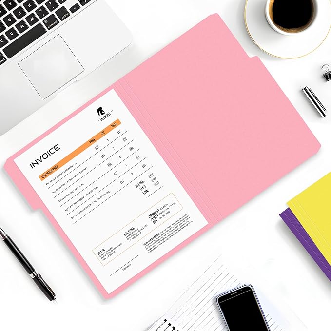 - 1/3 Cut Tab: Navigate through your files seamlessly with the 1/3 cut tab feature. This thoughtful design allows easy labeling, making it simple to categorize and retrieve documents efficiently. Stay organized and in control with these user-friendly folders.
