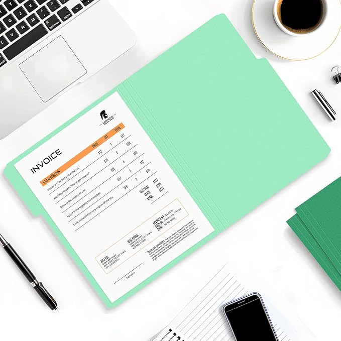 - Ideal Choice: This clear and popular color makes these green folders a good choice for effortless labeling and organization. These folders for documents are ideal for neatly managing invoices, reports, or individual documents, ensuring everything is neatly in place.
