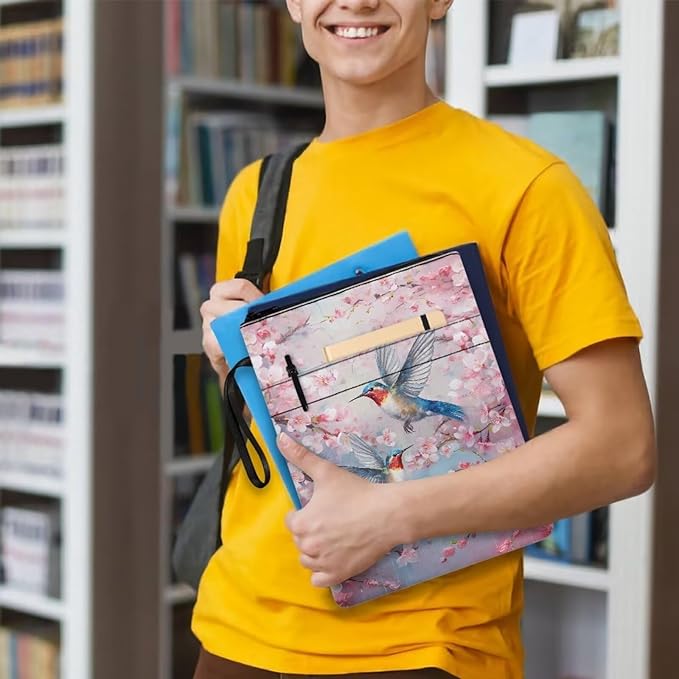 COEQINE Aesthetic Hummingbirds Book Sleeve Pink Cherry Blossom Birds Book Covers for Book Lovers Portable Chain for Library Front Pocket