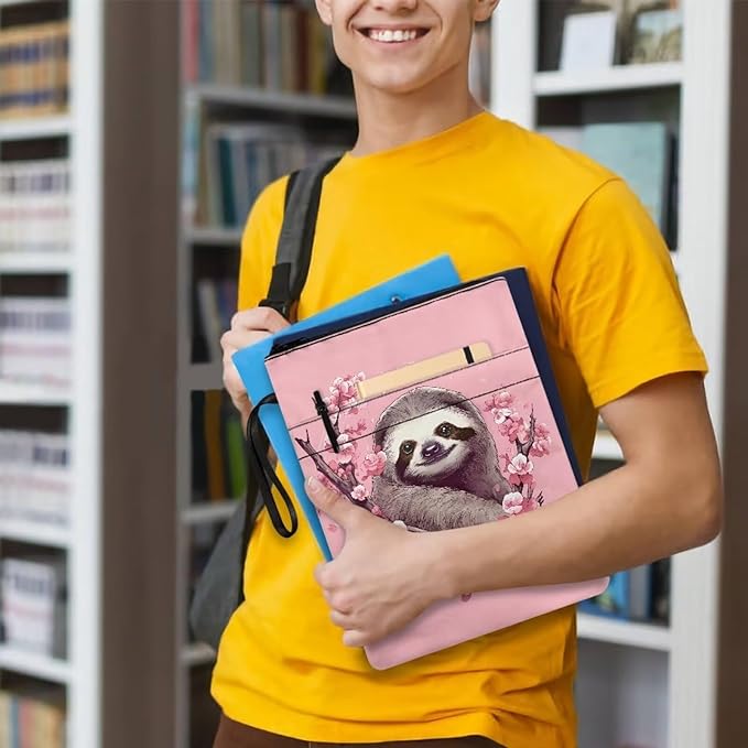 COEQINE Sloth Book Sleeve for Women Pink Cherry Blossom Book Covers for Hardcover Paperbacks Front Pocket Zipper Book Cover Case