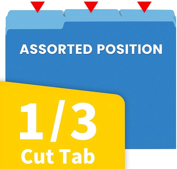 - 1/3 Cut Tab: Effortlessly navigate your files with the 1/3 cut file folder tabs design. This feature allows for clear labeling, making it simple to organize and access your documents efficiently. Keep your office tidy and organized with these easy-to-use folders.