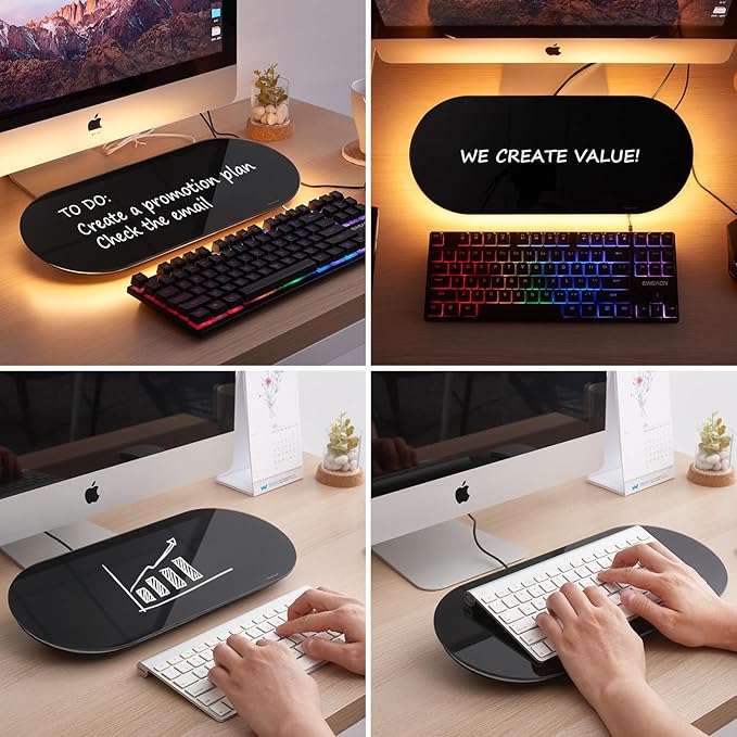 - PERSONALIZED DESIGN: The 17" X 7" desktop glass whiteboard is designed with a string of warm lights around the board, keep the usb cable plugged in, get a cool led whiteboard. The oval plate makes you feel better to hold and save more space on the table